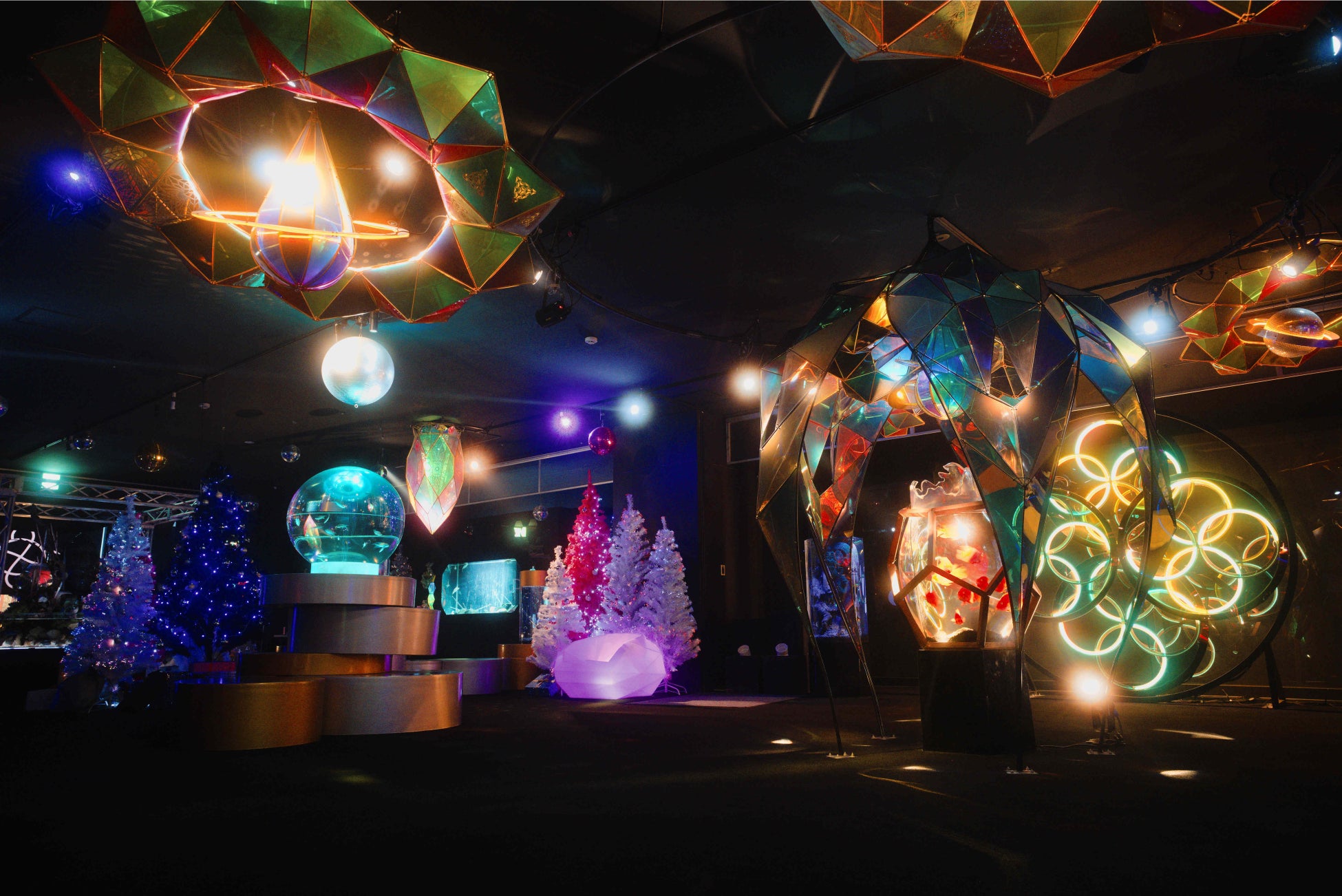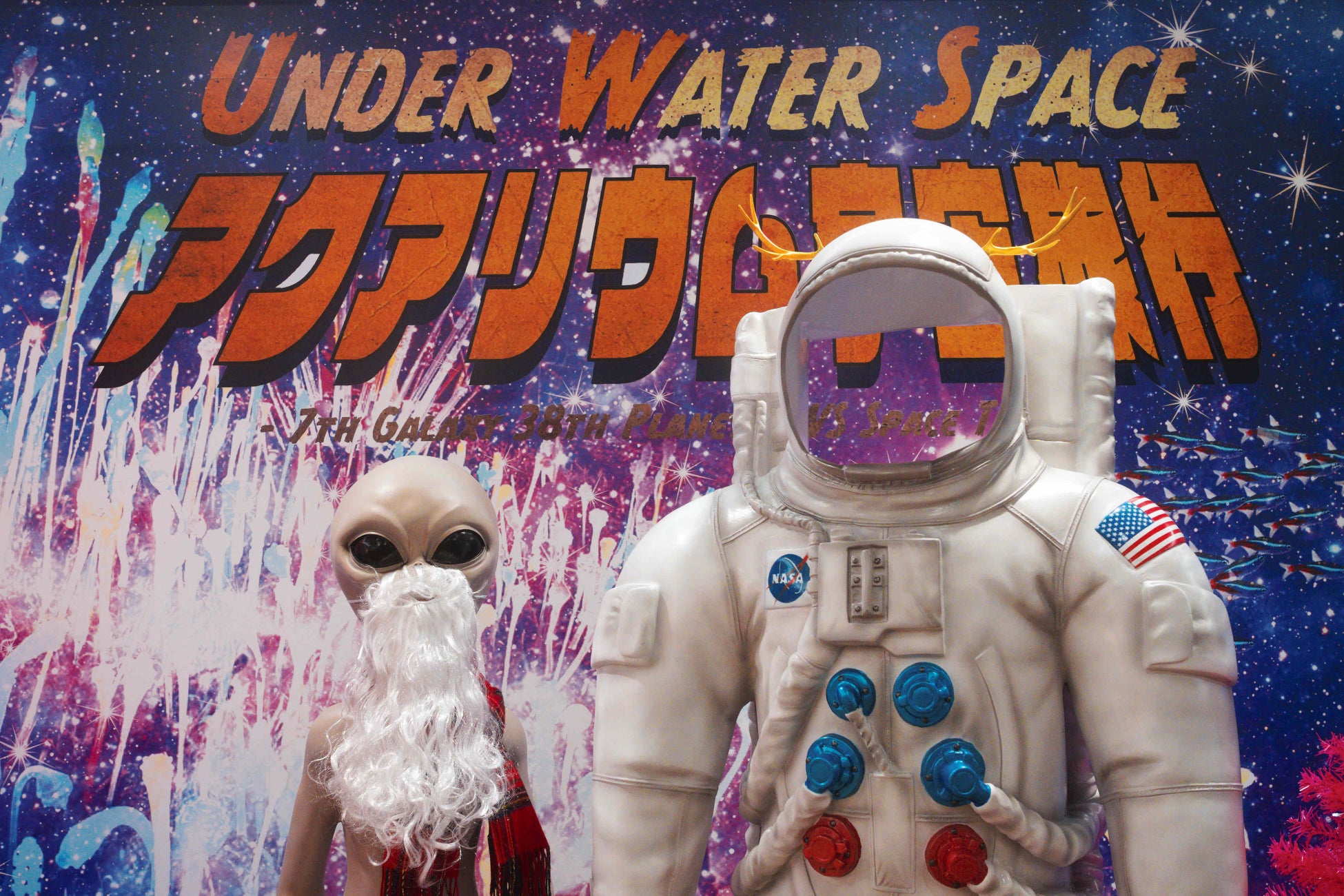 地球でのクリスマスイルミネーションに感銘を受けたミラーボーラー星人が、第38惑星「UNDER WATER SPACE」で今年も宇宙クリスマスイベントを開催。最大で高さ3Mを超えるものから赤や白といったカラフルなものまで、大小さまざまなクリスマスツリーを約60本設置しました。