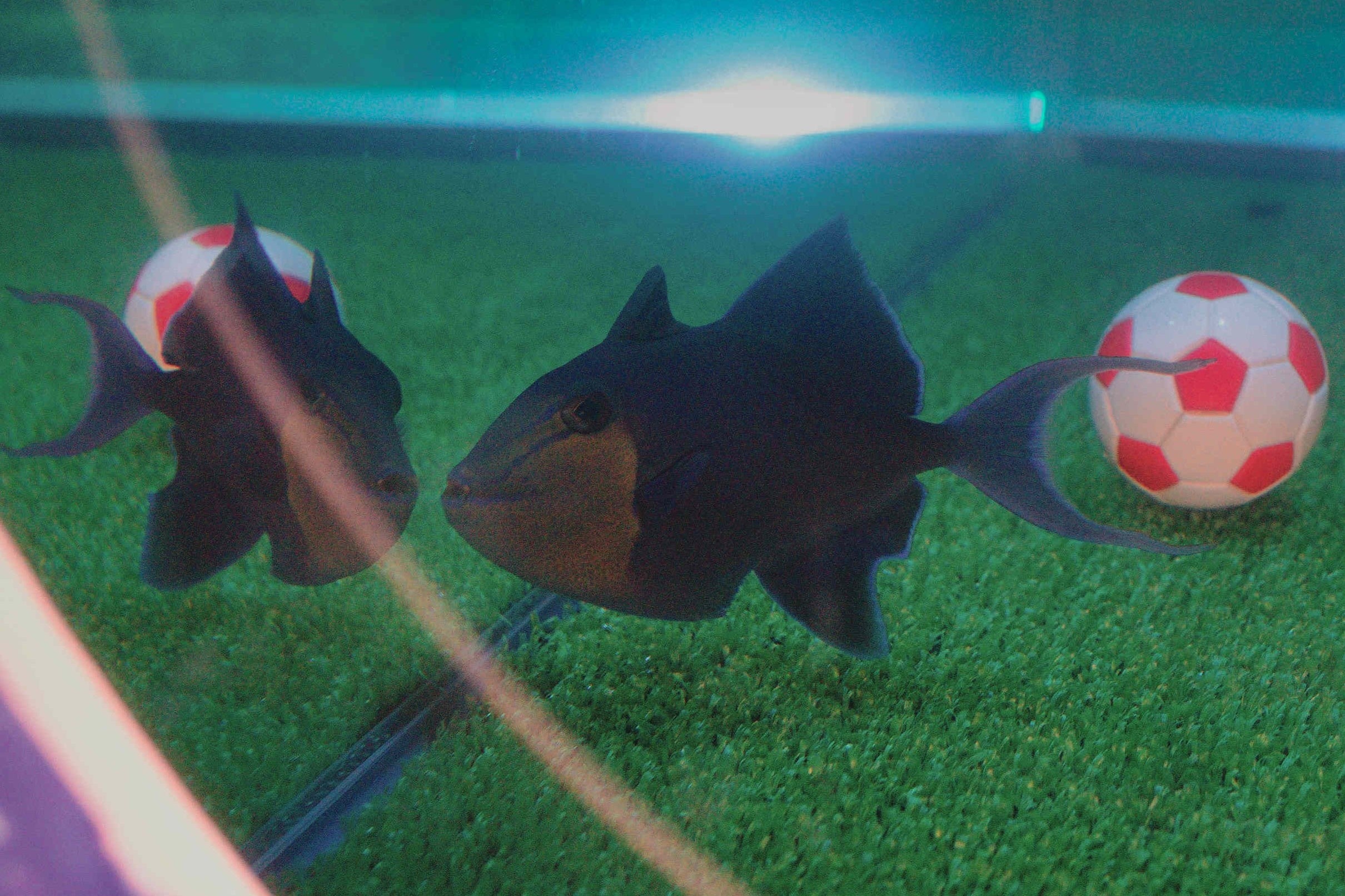 ユニークな特徴を持つ5匹の魚をサッカー選手に見立て、サッカーコートをモチーフにした水槽へ展示。それぞれの水槽へ取り付けられたパネルには、生体の解説に加え、選手としてのポジションや特徴を構想したコンセプトも記載しました。