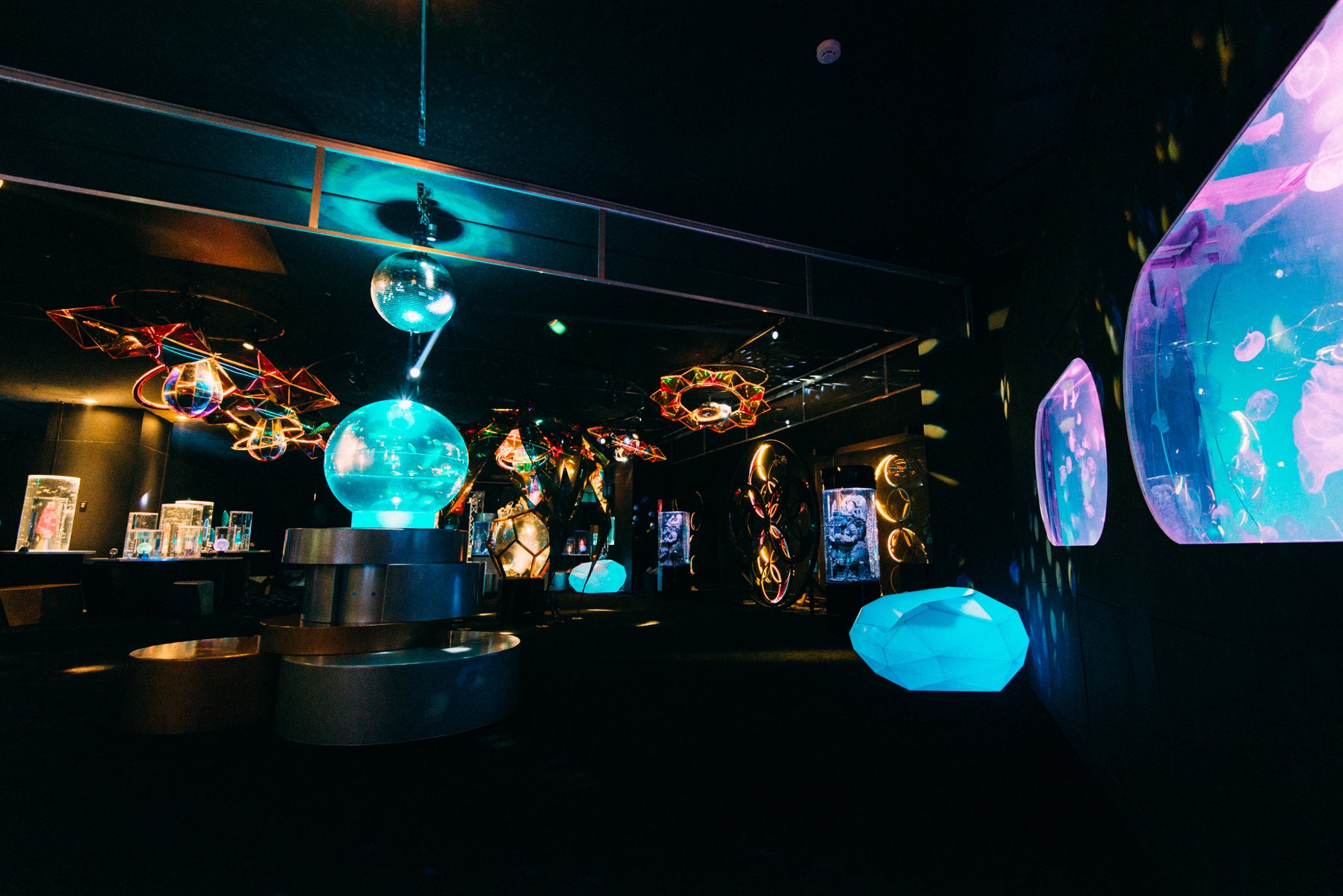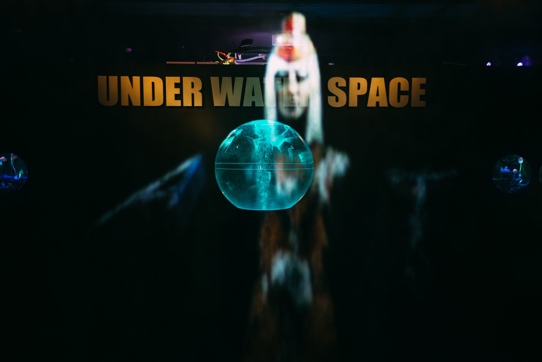 日本初となる宇宙 × アクアリウムをコンセプトにした期間限定水族館、アクアリウム宇宙旅行「UNDER WATER SPACE」は、既存の商業施設に建設が可能な新しいスタイルの水族館で、映像システムや音響、光、プロジェクションマッピングなどの最新のテクノロジーを取り入れ、空間を楽しむ8つの演出(光・影・水・音・香・動・生・驚)を提供する約220坪のエンターテイメントです。アクアリウムを水の惑星と称し、100万年に一度開催される水の惑星パーリーナイトへの参加を目的に、オリジナルのペチーナドリンクや宇宙人になれるカチューシャを付けて宇宙旅行へご案内させていただきます。